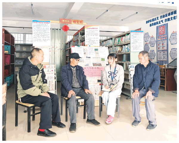▲恭城瑶族自治县纪委监委深入挖掘本地清官廉吏、历史名人、革命先辈等家风家训故事,通过廉政课堂分享讲述,引导党员干部深刻感悟传统家风文化的精神内涵。图为该县龙虎乡纪委干部与村里的老前辈们座谈交流,深入了解收集优秀家风家训故事。 余颖 摄