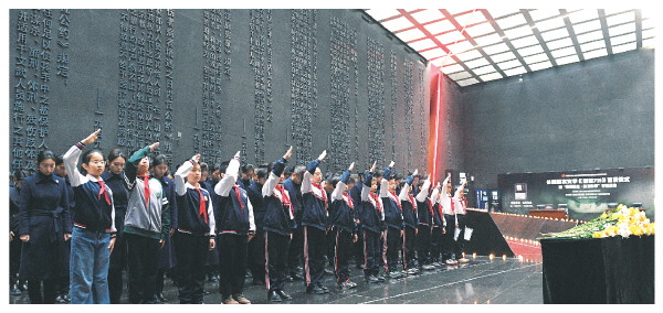 ▼12月13日,人们在黑龙江哈尔滨侵华日军第七三一部队罪证陈列馆参加悼念活动。新华社发(刘洋摄)