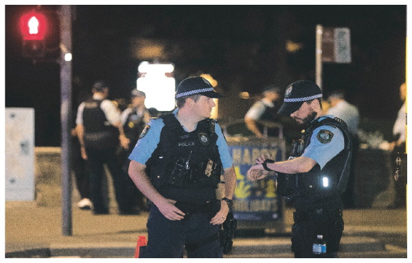 12月14日,在澳大利亚悉尼,警察在邦迪滩枪击事件附近区域执勤。新华社记者马平 摄