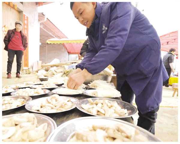 ▲村民正在村里的公共空间举办宴席。
