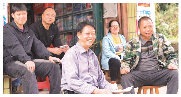 黎宗现(左三)把村口小卖部变成“人情新风宣传点”。
