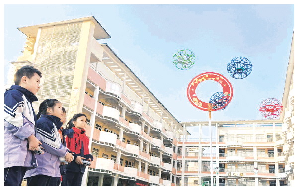 ▲在桂林市樟木小学“科技启迪智慧 创新引领未来”科技主题周活动中,孩子们化身“足球运动员”,操控球形无人机在特制的“球门”中灵活穿梭攻防。这次活动让他们看到了科技“酷炫”又“接地气”的一面,同时在孩子们心中播下了探索与创新的种子。(冯婷)