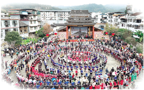 共跳《侗年多耶歌》团圆舞。