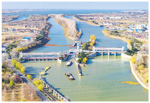 ▲12月21日在江苏省扬州市江都区拍摄的南水北调东线一期工程运盐闸、邵仙套闸、邵仙闸洞(无人机照片)。 新华社发(任飞摄)