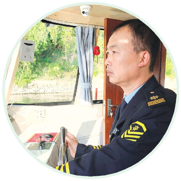 ▲正在驾驶游船的陈远辉。