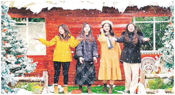 ◥日前,在叠彩区尧山花卉基地“欣儿的花园”里,一场人造雪吸引了许多女孩前来游玩。据该花园创始人梁琼方介绍,入冬以来大部分时间天气晴好,花园里的花也持续绽放。除了看花,她还根据时令特征,增加了许多冬季元素,比如人造雪景,吸引了许多人前来打卡游玩。周末日均访客量达到了近400人次。