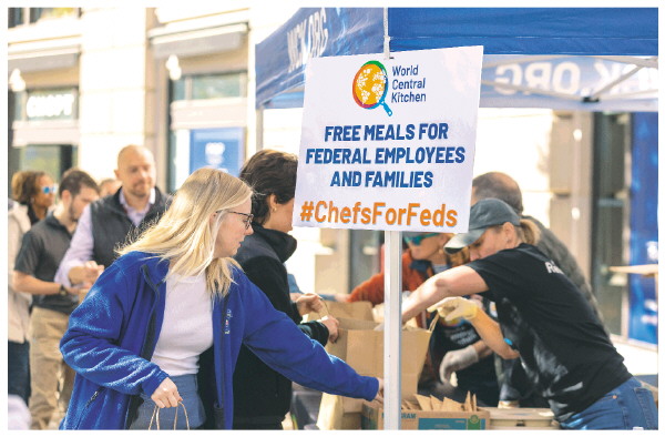 ▲11月5日,在美国首都华盛顿,联邦雇员排队领取免费食物。