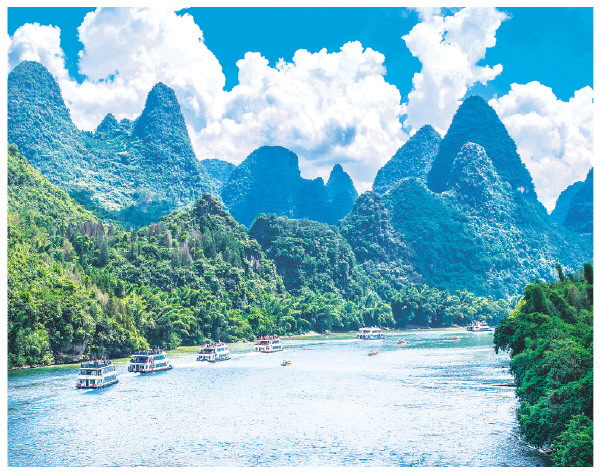 ▲作为漓江流域的重要节点,阳朔78%的地域位于漓江风景名胜区内,每逢节假日,泛舟漓江是很多游客的选择。记者唐艳兰 摄
