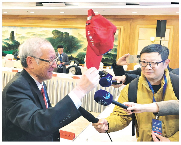 ▲1月2日,首次“小三通”直航亲历者、马祖前民意代表曹尔忠向记者展示25年前首航戴的那顶帽子(手机照片)。 新华社记者许雪毅 摄