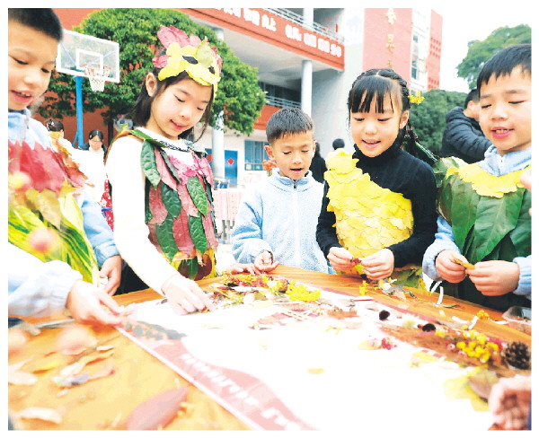 为迎接2026年的到来,桂林市英才小学的孩子们以落叶为笔,创作充满奇思的叶贴画,作品巧妙融合自然素材与科技想象,以独特艺术形式迎接新年。