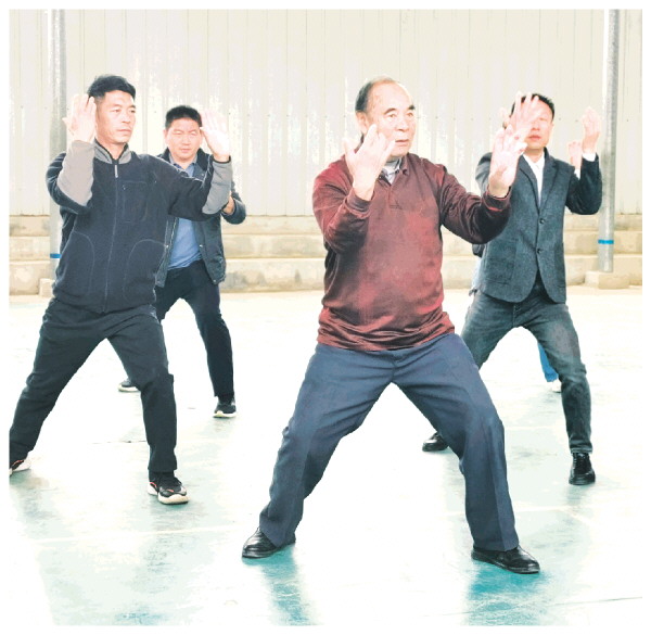 廖俊刚(前)亲自带领刘荣斌(二排右一)等人打拳。