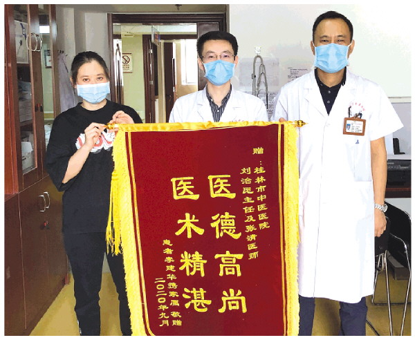 患者为刘治昆(右)和张清送锦旗。