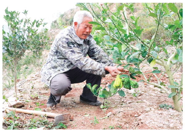 村民张昌运介绍如何种植佛手。