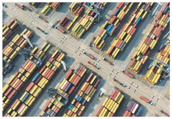 这是2026年1月8日拍摄的宁波舟山港穿山港区集装箱码头货场(无人机照片)。