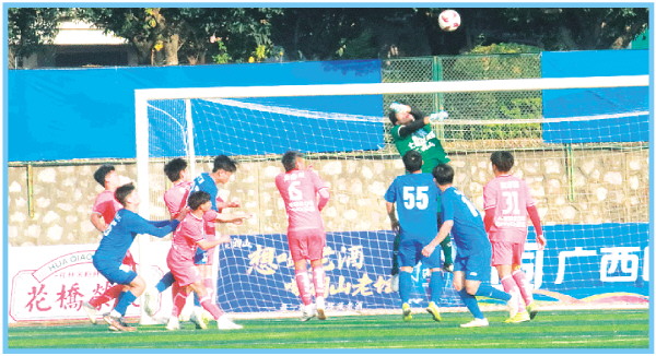 桂林市七星区队门将扑救瞬间。