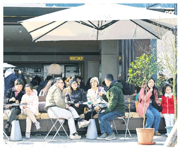 1月10日,消费者在上海市徐汇区西岸梦中心一家商铺外摆区域享用甜品。 新华社记者陈浩明 摄