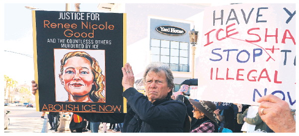 另一名抗议者珍妮说,她从澳大利亚移民来美国,观看了很多遍古德死亡事件的视频,结论是ICE“无缘无故地枪杀一名美国公民,而特朗普政府却在撒谎”。