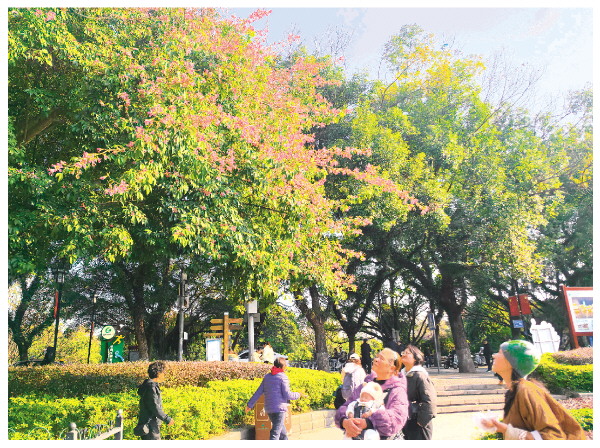 近日,位于两江四湖知音台码头附近的一棵异木棉开满鲜花,满树粉色繁花在冬日暖阳下更显美丽夺目,给冬日桂林送上“粉色浪漫”。