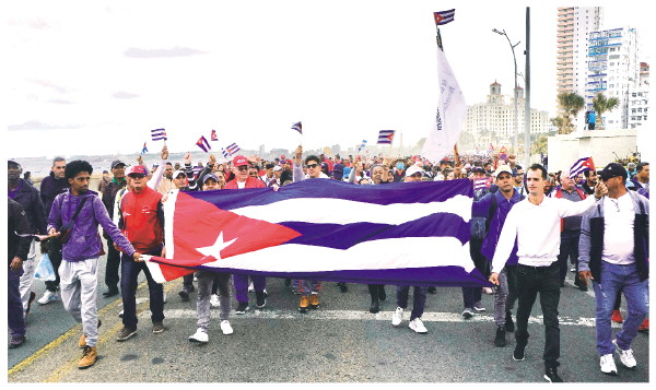 “你现在听到的这些声音,是在支持革命、支持菲德尔、支持一个有尊严且拥有自身发展规划的国家。”哈瓦那市民何塞·卡米洛在游行中对记者说。