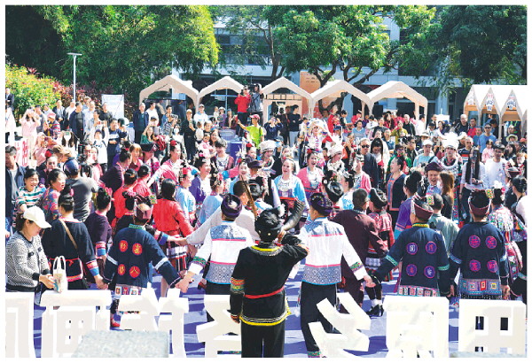 本报讯(记者李忠波 通讯员秦榛/文 通讯员秦榛/摄)芦笙踩堂、琵琶弹唱、长发梳妆……1月16日,“梯田原乡各族画廊”龙胜各族自治县文艺展演暨农文旅推介会在深圳市南山区南头古城启幕。一场融汇苗、瑶、侗、壮、汉多民族风情与生态魅力的文化盛宴,为深圳市民带来了来自桂北山区的独特韵味,也让龙胜农文旅资源在大湾区成功“出圈”。