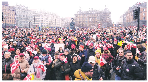 ▲1月17日,人们在丹麦首都哥本哈根的市政厅广场参加游行示威。