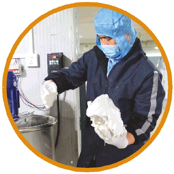 将干粉充分混合,制作红薯粉。记者刘菁 摄