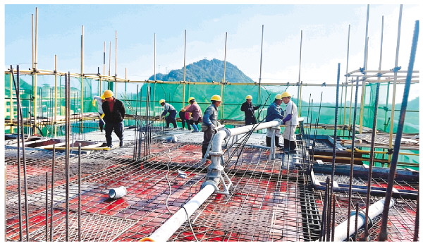 桂林市万福配售型保障性住房项目梁板浇筑施工现场。
