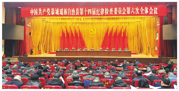 ▲1月23日,中国共产党恭城瑶族自治县第十四届纪律检查委员会第六次全体会议召开。会议强调,要深入学习贯彻习近平总书记重要讲话精神,全面落实上级纪委全会部署,以更高标准推进全面从严治党,深化反腐败斗争,为谱写中国式现代化恭城篇章提供坚强保障。图为会议召开现场。 费柳洁 摄