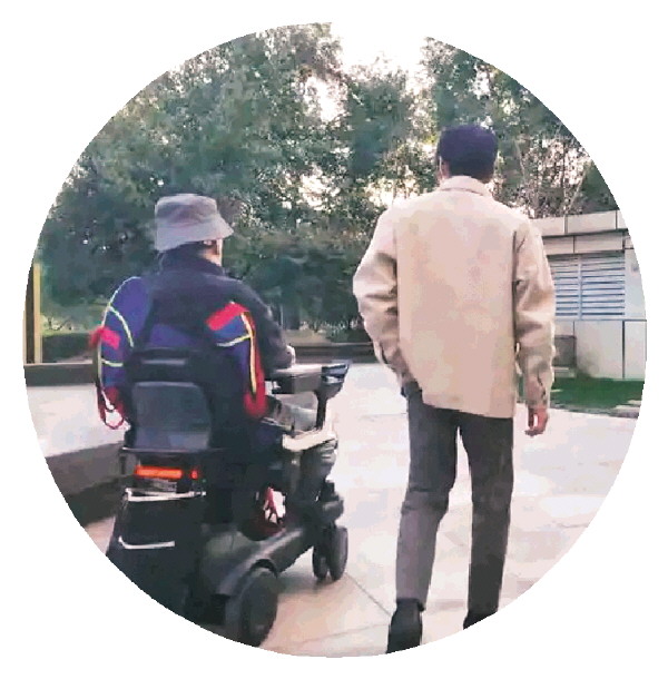 2025年,四肢瘫痪患者(左)通过脑机接口系统“意念”控制轮椅。(图源:新华网)