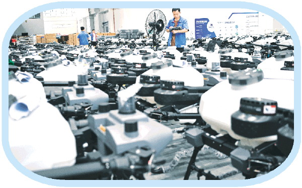 2025年6月26日,工作人员在联合飞机集团深圳基地植保无人机仓库内巡视。