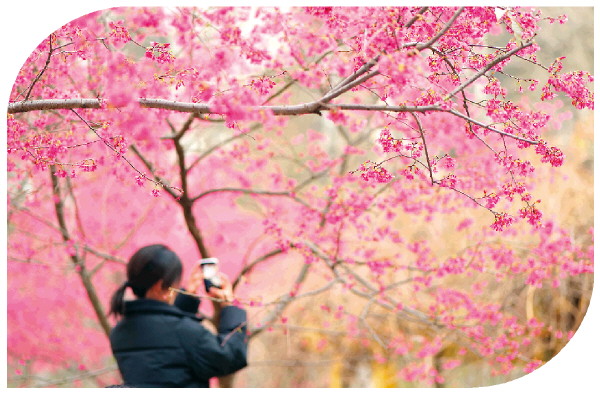 南溪山公园里,早樱初绽,粉霞满枝,市民赏花,邂逅一抹温柔春意。 记者苏展 摄