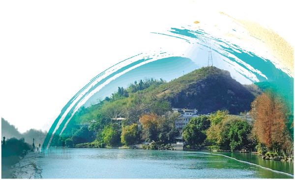 ▼桂湖畔的骝马山。