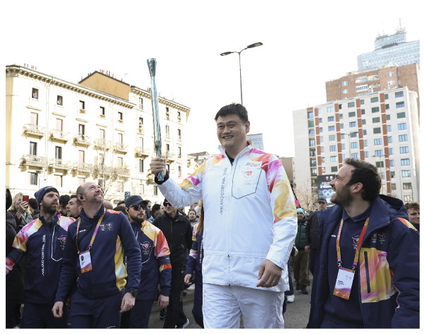 ▲2月6日,中国篮球名将姚明传递火炬。