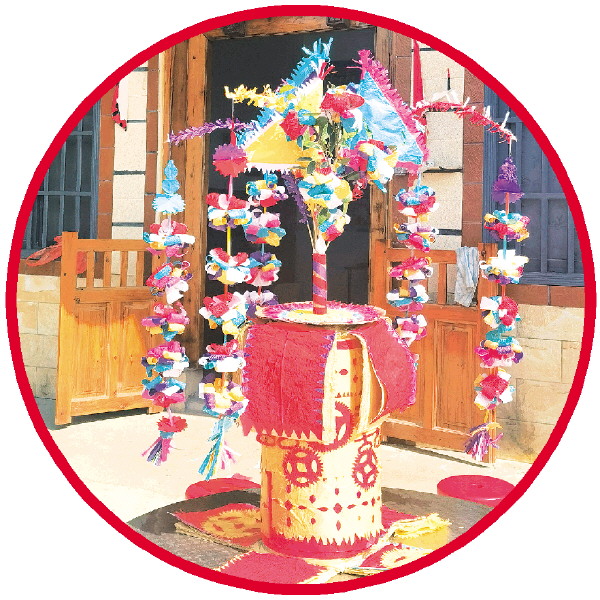虽已高龄,黎胜保仍乐意亲力亲为。卷炮身时,他在一旁叮嘱“卷紧一些”;制花时,他手持剪刀,行云流水地裁剪着彩纸。而其他人的分工也井然有序:年轻人将裁好的彩纸卷在竹筒上按压出自然褶皱,七瓣为一簇扎成一朵花;年纪稍长的中年汉子,则专注于炮身的制作,用火纸层层卷出炮身,而叮叮当当的敲打声也来源于此。“从扎架、剪花、装裱到炮芯制作,全是手工活,一个花炮要做4个小时左右。”黎胜保告诉记者,看似简单的步骤里也藏着大学问,“尤其是炮头的制作,直接关系到花炮当天燃放的效果,马虎不得。”