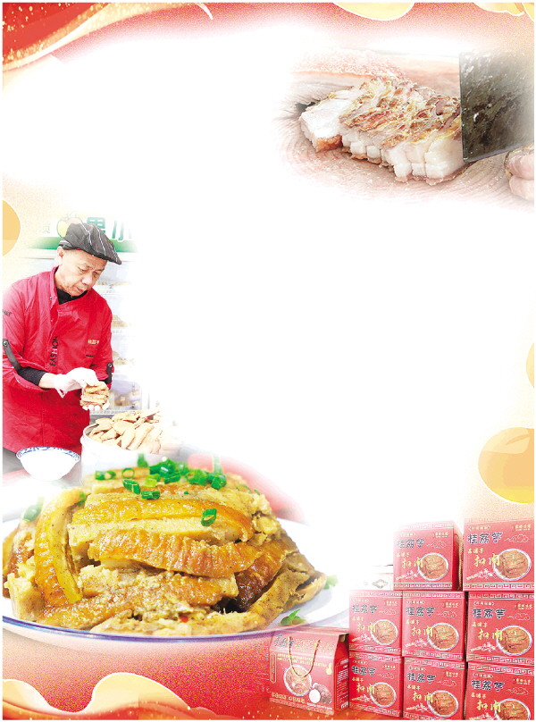 临近年关,荔浦市区的桂荔芋食品店内早早蒸腾起一片醇厚的香气。桂林市第九批市级非物质文化遗产项目“荔浦芋扣肉制作技艺”代表性传承人何昭兵站在灶前,目光注视着在滚油中翻转的一块块五花肉,不一会儿,肉的表皮逐渐泛起诱人的金黄色。“油温是关键,差一点,口感就天差地别。”他说。
