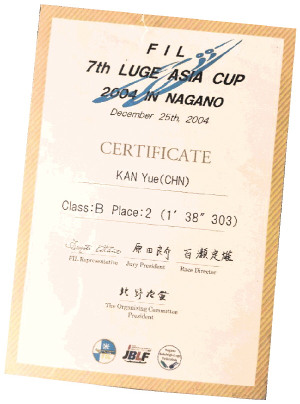 2001年12月,在第四届雪橇亚洲杯比赛中,阚樾、刘洋等9名队员参赛,取得了历史性的突破,在男子青年组分别获得了第三和第五名的好成绩,在女子青年组也斩获了第三、十二、十三名的佳绩。