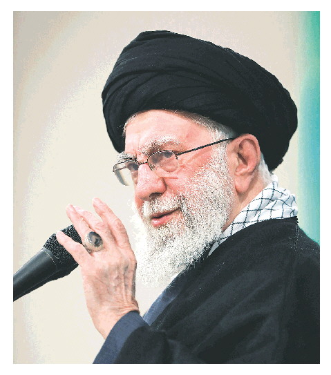 ◤这是1月17日哈梅内伊在伊朗德黑兰发表讲话的资料照片。