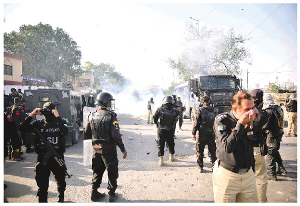 3月1日,执法人员在巴基斯坦南部城市卡拉奇的美国驻卡拉奇领事馆外控制局势。