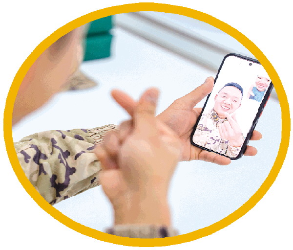 武警官兵通过手机视频向家人送上元宵节祝福,传递思念。