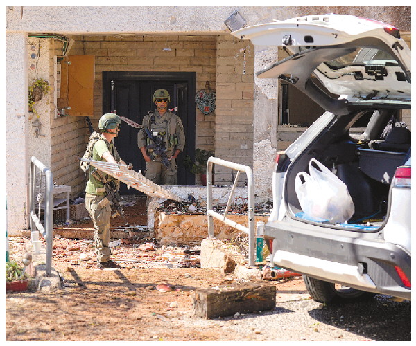 ▲3月3日,在以色列北部尤瓦尔村,安全人员在一处遭受袭击波及的房屋开展工作。