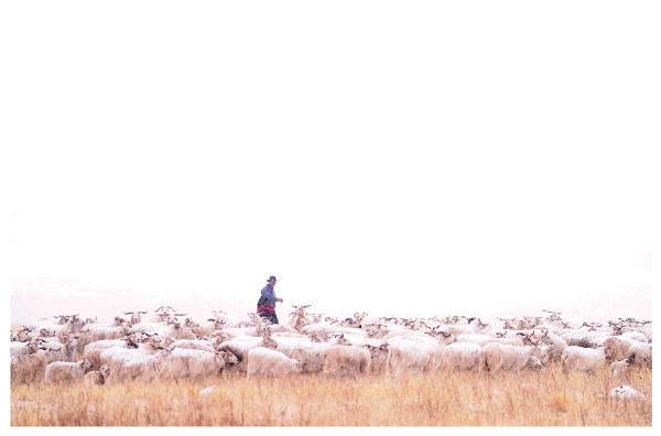 羊群乘车从河西走廊驶来略显萎靡,但经过近半年休整的祁连山草原牧草长势良好,新生的羊羔放归草原时活力满满,春雪中,牧民东宝充满了希望。