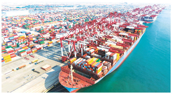 ▲2026年3月10日,在山东港口青岛港,外贸集装箱码头作业一派繁忙(无人机照片)。 新华社发(俞方平 摄)