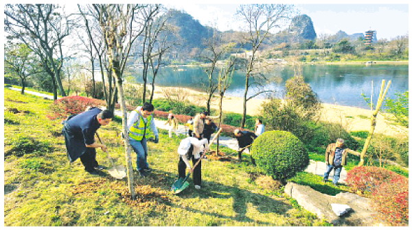 放眼桂林城乡,从城区到县域,从社区绿地到公园景区,处处都是热火朝天的植树场景,党员干部带头示范,志愿者主动参与,群众热情响应,大家用劳动诠释着对绿色家园的热爱,让桂林的山更青、水更绿。