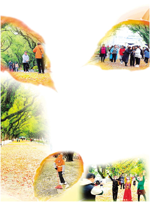 桂林作为山水旅游名城,自然景观与人文底蕴相辅相成,春季落叶是南方特有的自然现象,也是城市生态之美的重要组成部分。制造这场落叶美景的主角之一是桂林的乡土树种香樟树,在市区滨江路、漓江路、环城北一路、七星路、中山南路、西山路、凤北路等路段都能见到。其中,王城景区里的香樟树有80多株,是上世纪60年代种的;而沿着漓江蜿蜒的滨江路上种植的香樟树,则是上世纪60年代和70年代所种,共有408株。如今已实行“落叶缓扫”的王城景区,就成为市民游客欣赏落叶美景的好去处。