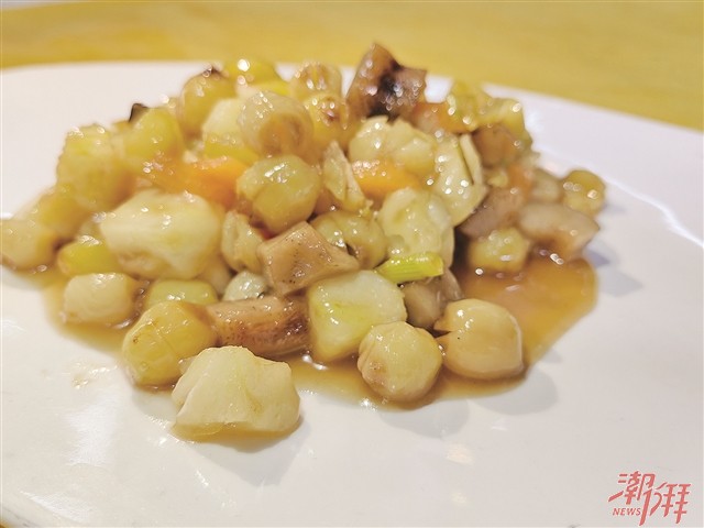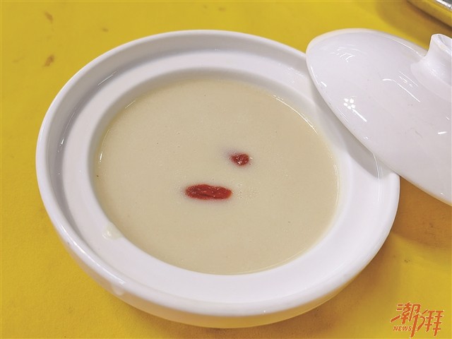 制作莲子羹的过程,宛如一场精心编排的舞蹈,这也正是潮州菜的粗料细作的奇妙之处:首先,需精选优质的莲子,去除莲心,以避免苦涩之味。然后,将莲子浸泡在高汤之中,使其吸饱精华,变得饱满而圆润。接下来,便是耐心地熬煮。在小火慢炖的过程中,莲子逐渐释放出自身的精华,与汤汁相互交融。期间,可根据个人口味加入适量的蛋、奶等食材,增添口感的丝滑程度和营养价值。当莲子羹出锅的那一刻,热气腾腾,香气四溢。那浓稠的汤汁,水乳交融的莲子泥,以及点缀其间的枸杞,构成了一幅诱人的画面。那丝滑的口感,带着淡淡的清香,高汤的醇厚,滑过喉咙,滋润着身心。仿佛每一勺都蕴含着大自然的精华,为我们疲惫的身躯注入新的活力,真有一种说不出的爽滑,仿佛整个身心都被这股温暖所包围。难怪湖南来的专家赞赏有加。