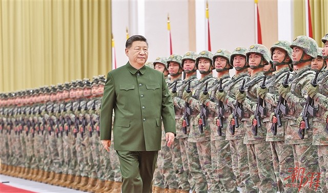 (紧接01版)“同志们好!”“主席好!”“同志们辛苦了!”“为人民服务!”习近平亲切问候官兵,官兵们响亮作答。