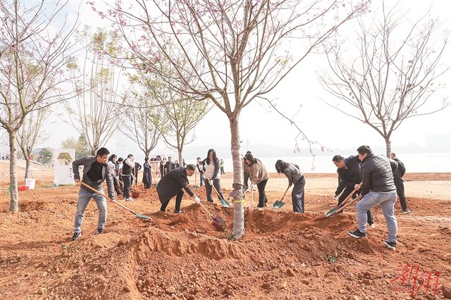 2月28日,市委人才办在湘桥区仙洲岛湿地公园举办“人才林”种植活动。