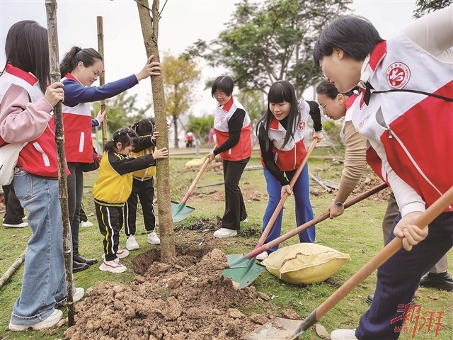 3月12日,市妇联联合湘桥区娃哈哈幼儿园组织68对亲子在凤凰滨江公园开展亲子植树活动。