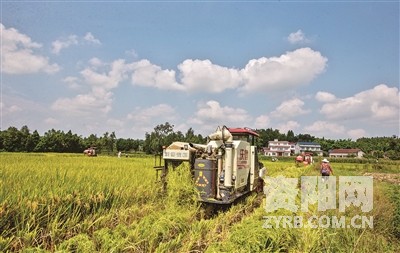 水稻收割现场。