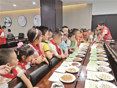 除了“请进来”,市中医医院的志愿服务也在“走出去”“沉下去”。在资阳市2023年暑期“七彩托管”少年儿童成长营中,医院为60多名小营员提供了“中医药文化”特色课程,带着孩子们识别药材、练养生操。